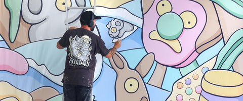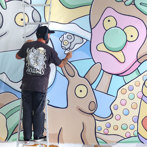 Brentos is a Sydney-based artist, designer, and picture book creator who finds endless inspiration in the Australian bush and coastline. His signature art style froths with colourful pastels, big surf vibes, cheeky wildlife characters and classic Aussie charm. Working with his partner Tash and studio dog Wally, they paint murals, design merch and collab with brands and charities that share their passion for championing the natural environment.