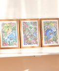 A beautiful chaotic trio of prints bursting with colour.