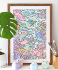 Brentos prints are printed on museum-grade 310gsm (very thick) paper with a creamy texture that pairs magically with Brentos' signature pastels. Printed, hand-signed and dated right here by us in our art studio using pigment based inks.