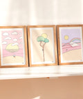 Soft, sandy tones and pink skies set the mood in this peaceful koala print trio. Featuring climbing koalas, dreamy horizons, and a pastel wave beneath a rainbow, it’s a gentle nod to coastal days and sunset surf sessions. Calming, minimal, and full of charm.