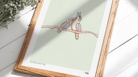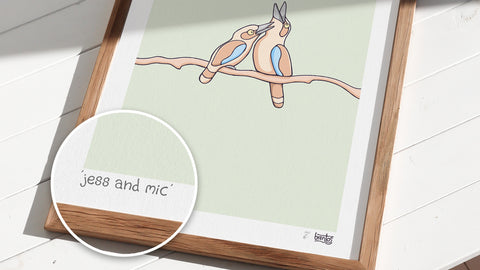 Brentos will personalise your Kookaburra print by hand-signing your names in the bottom left corner.