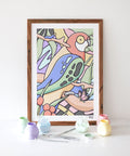 Brentos prints are printed on museum-grade 310gsm (very thick) paper with a creamy texture that pairs magically with Brentos' signature pastels. Printed, hand-signed and dated right here by us in our art studio using pigment based inks.