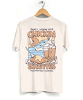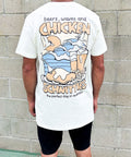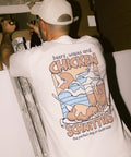 It's a summer stunner, the waves are 4ft and a light offshore wind is keeping them glassy. You spend a solid day catching some fun ones and as you paddle in your mate yells out "pub?". Before you know it, you're parked on the deck of your beachside local with an ice cold pale ale and a steaming hot chicken schnittie, chips, salad and gravy. These are the summer pub feeds we live for and we had to celebrate them with an ode to the chicken schnittie. Get one on your torso before you get a schnittie in your torso.
