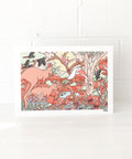 Brentos prints are printed on museum-grade 310gsm (very thick) paper with a creamy texture that pairs magically with Brentos' signature pastels. Printed, hand-signed and dated right here by us in our art studio using pigment based inks. Every seek and find print includes a matching companion card listing the species to find and their conservation status.