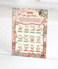 Every seek and find print now includes a companion card that shows you which species you need to find, the number of individual animals and their conservation status.
