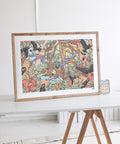 Explore Australia's bustling eucalyptus forests in this unique seek and find art print! It includes a complimentary companion card that shows you which species you need to find in the artwork, the number of individual animals and their conservation status. It serves as a fun and engaging way for all ages to learn about the importance of wildlife conservation. Printed on museum-grade fine art paper and hand-signed by Brentos.