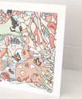 Brentos prints are printed on museum-grade 310gsm (very thick) paper with a creamy texture that pairs magically with Brentos' signature pastels. Printed, hand-signed and dated right here by us in our art studio using pigment based inks. Every seek and find print includes a matching companion card listing the species to find and their conservation status.