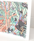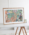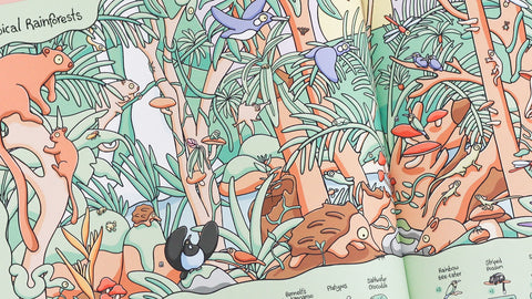 Explore Australia's thriving tropical rainforests in this unique seek-and-find art print. It includes a complimentary companion card that shows you which species you need to find in the artwork, the number of individual animals and their conservation status. It serves as a fun and engaging way for all ages to learn about the importance of wildlife conservation. Printed on museum-grade fine art paper and hand-signed by Brentos.