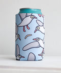 A flock of seagulls having a biffo over a potato chip. Now yours to pop over your can of a beverage of your choice.