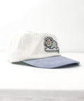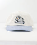 Our classic surfing koala makes another come back! This time on a cream and pastel sky two-tone cord hat. He won't last long. Yeww!
