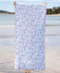 This giant art towel serves up the classic beachside combo, seagulls and hot chips. Salty, cheeky, and impossible to enjoy without a flock of feathered friends swooping in.