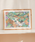 The low rumble of Cassowaries filter through the treetops of the Daintree Rainforest. An illustration adapted from Brentos' book Wild Australia. Also available in Landscape orientation here.