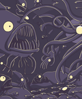 A group of deep sea creatures light up Huon Marine Park with their bioluminescent lures. An illustration adapted from Brentos' book Wild Australia. Also available in portrait orientation here.