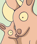 A Kangaroo and it's joey stop to share a cuddle.