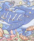 Ningaloo Marine Park is Australia's longest fringing barrier reef, attracting over 400 Whale Sharks who swim here to fill their bellies with plankton. An illustration adapted from Brentos' book Wild Australia. Also available in portrait orientation here.