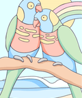A pair of Rainbow Lorikeets sit in a branch after a morning rain shower.